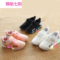 锦铭七玥018秋季男童运动鞋带灯网布休闲鞋宝宝弹力布透气闪灯女童鞋