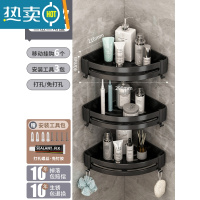敬平卫生间浴室三角置物架免打孔厕所洗手间洗漱台壁挂淋浴房转角收纳 经典黑加厚三角篮-三层浴室置物架