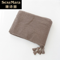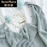 珊诗丽全棉纯色毛线盖毯纯棉挂球毯针织空调毯灯笼球毯沙发毯装饰毯子安吉丽娜(天空蓝)130X170cm