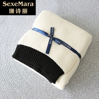珊诗丽ins北欧针织盖毯腈纶毯纯色午休毯空调毯简约休闲毯子沙发盖毯拼色腈纶毯-米白150*200cm