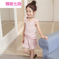 锦铭七玥(实力5)2018夏装新款飞袖娃娃衫背心女童装荷叶边短裤家居服