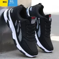 聚范男鞋2024新款男士休闲透气黑色跑步鞋子运动鞋冬季加绒网面潮
