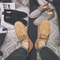 2017秋季新款素色百搭休闲鞋纯色低帮鞋透气反绒皮复古平底鞋男潮