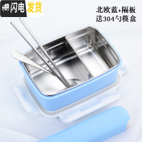 三维工匠埃恩304不锈钢饭盒成人带盖韩国分格便当盒食堂学生简约保温餐盒 北欧蓝色有隔板送304勺+筷+盒