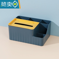 敬平纸巾盒客厅抽纸盒简约轻奢多功能桌面收纳盒家用餐厅创意遥控盒 大号蓝色