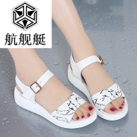 夏2017新款时尚坡跟厚底鞋女松糕底凉鞋女舒适一字带罗马百搭休闲