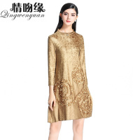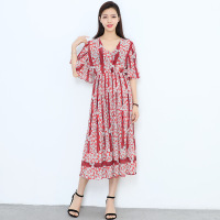 原创设计品牌女装喇叭袖印花雪纺连衣裙百褶裙CYLLMX