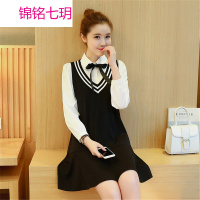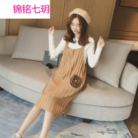 锦铭七玥春秋孕妇装毛衣中长宽松背带针织衫孕妇连衣裙两件套