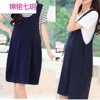 锦铭七玥夏季新韩版孕妇装宽松短袖条纹两件套背带孕妇连衣裙