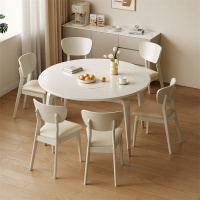 质凡北欧风岩板餐桌椅组合可伸缩家用方圆两用小户型实木折叠饭桌