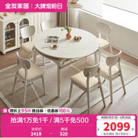 全友家居现代轻奢微晶石餐桌椅组合2024新款客厅折叠圆桌