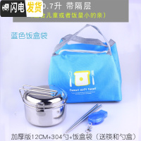 三维工匠蒸饭盒304不锈钢饭盒圆形双层食堂饭缸成人铁饭盒便当盒学生带盖 加厚12CM+折叠勺+蓝保温袋+筷
