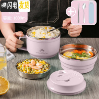 三维工匠保温饭盒304不锈钢小容量二层女1人学生便携便当盒真空提锅 304真空提锅1000粉+折叠勺
