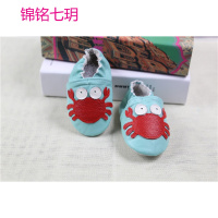锦铭七玥新款儿童鞋真皮绣花可爱螃蟹图案宝宝鞋 防滑室内学步鞋儿童棉鞋