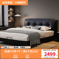 全友家居意式极简主卧高端大气黑色双人软包像素真皮大床