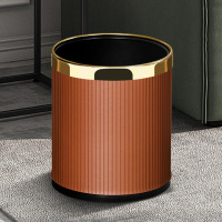 定制垃圾桶酒店客厅高档办公室厨房双层垃圾筒商用 10L棕色条纹-金圈