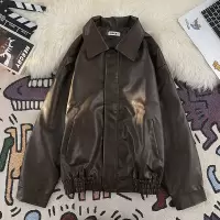 YANXUXOL 美式复古痞帅机车PU皮夹克男女港风chic街头潮牌棕色皮衣外套