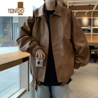 男装美德拉棕色pu皮夹克春秋季高街美式潮牌宽松休闲机车男士外套