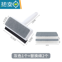 敬平日式擦镜子家用洗浴室玻璃清洁刷卫生间桌面刮水器挂水擦窗刮水器 二合一清洁刷♥灰色[1个装]+替换棉2个擦玻擦玻璃器