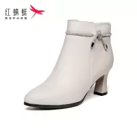 小牛皮 头层牛皮复古短靴女秋冬新款马丁靴白色粗跟烟筒靴女