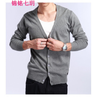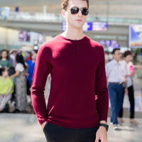 纯羊毛圆领提花薄款毛衣男士纯色纽扣羊毛衫秋冬套头潮打底衫