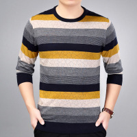 2017冬季新款中老年男装男式毛衣条纹翻领套头薄款羊毛衫绿色