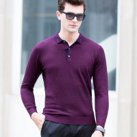 纯羊毛薄款翻领提花毛衣男装商务AB纱羊毛衫中老年套头打底衫