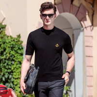 半高领毛衣男装潮牌针织T恤纯羊毛衫男薄款短袖韩版潮流修身线衣