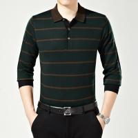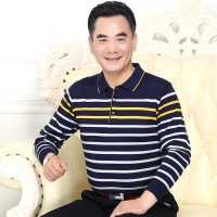 秋中年长袖T恤男中老年翻领条纹薄款针织羊毛衫爸爸装打底衫