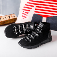 巴黎世家袜子鞋男女童鞋透气弹力飞织网面跑步鞋欧洲站时尚套脚懒人休闲鞋小码儿童鞋黑色