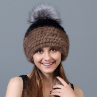 秋冬新款狐狸球保暖护耳帽子加厚水貂毛帽子裘皮皮草帽子女黑+浅咖均码稍有弹力