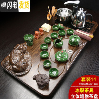 三维工匠全自动茶具套装家用简约四合一电磁炉整套茶盘实木茶台乌金石茶海 13九龙多福+绿陶