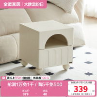 全友家居奶油风床头柜实木脚抽屉式卧室置物收纳储物小柜子