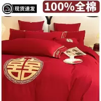 结婚庆新婚嫁丨红色四件套纯棉床单被套轻奢刺绣婚房陪嫁喜被床品