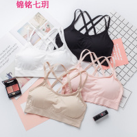 锦铭七玥带胸垫无钢圈美背裹胸抹胸内衣交叉聚拢打底吊带运动背心文胸