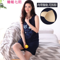 锦铭七玥2018新款带胸垫睡裙免穿文胸bra夏季背心女款中长裙睡衣居服女