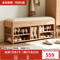 全友家居 软包换鞋凳原木风实木腿入户门口鞋柜收纳凳子储物凳