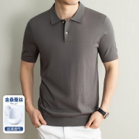 夏季新款男士翻领纯色桑蚕丝短袖t恤休闲亚麻男装棉质半袖polo衫