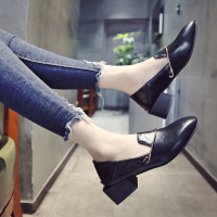 25春秋季新款气质粗跟方头漆皮通勤浅口女鞋时尚四季软底粗跟女鞋