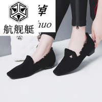 SUNTEK金属扣瓢鞋软皮女鞋2022新款方头漆皮流苏平底浅口鞋单鞋乐福鞋女