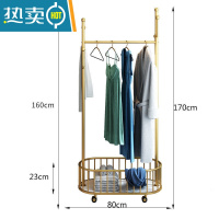 敬平意式轻奢挂衣架落地卧室简约实用房间移动式加厚置物晾衣杆 80网格仙人掌衣帽架金晾晒架