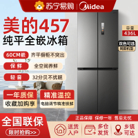 美的457十字双开四门超薄零嵌入式冰箱家用白色一级风冷无霜