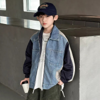 男童春装牛仔外套2026新款中大儿童痞帅气时髦男孩拼接夹克春秋款