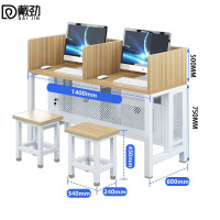 戴劲微机房电脑桌台式桌学校多媒体教室培训桌1.4米[带屏风含两凳]