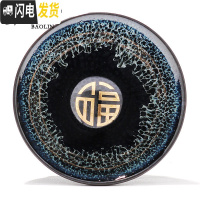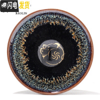 三维工匠建盏瓷器功夫茶杯陶瓷单个茶盏杯品茗杯茶具主人杯单杯斗笠纯手工 建盏杯-苍蓝-金猪(礼盒装)