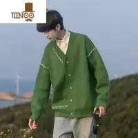 YANXU牛油果绿开衫毛衣男慵懒感V领针织衫外套oversize情侣装