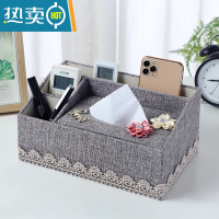 敬平多功能纸巾盒子客厅抽纸盒家用创意茶几遥控器布艺网红收纳盒欧式 后三格大格子
