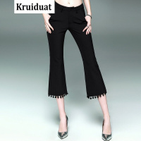 Kruidvat2017春款中腰喇叭裤女七分显瘦微喇裤女休闲长裤黑色裤子HD黑色