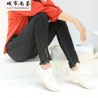 弹力小脚牛仔长裤女毛边黑色紧身弹力牛仔裤显瘦铅笔裤