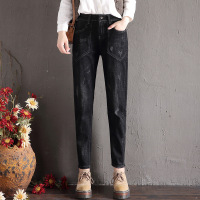 珂依舍2018春夏装新款新款牛仔裤女黑色长裤小脚宽松弹力哈伦裤垮裤潮